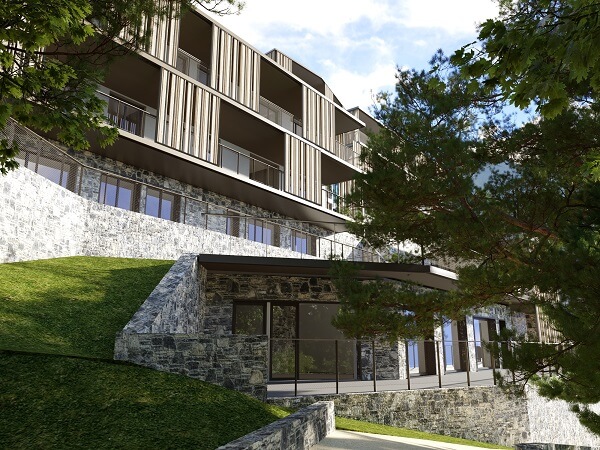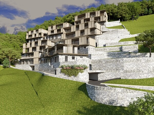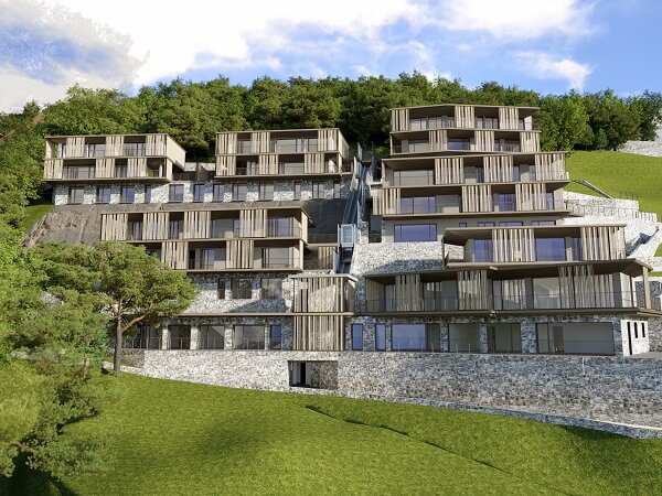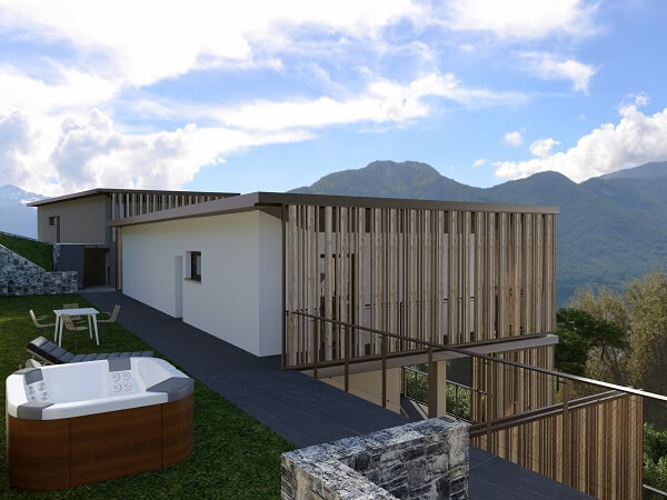 PROGETTAZIONE PREVENZIONE INCENDI PER ATTIVITA’ DI AUTORIMESSA E IMPIANTI DI RISCALDAMENTO / RAFFRESCAMENTO ESTIVO IN POMPA DI CALORE ASSERVITI DA PARCHI FOTOVOLTAICI E TERMICI CON IMPLEMENTAZIONE DI VENTILAZIONE MECCANICA CONTROLLATA AD ALTA EFFICIENZA PER COMPLESSO EDILIZIO DI 22 VILLETTE DISTRIBUITE IN SETTE CORPI DI FABBRICA EDIFICATI SU VERSANTE MONTANO CON VISTA LAGO, LOCALITA’ SANTA MARTA IN COMUNE DI CARATE URIO (CO). PARTICOLARE ATTENZIONE E’ STATA POSTA NELLA DEFINIZIONE DEI VARI PACCHETTI ISOLANTI E DEI RELATIVI PONTI TERMICI, CON LA SCELTA FINALE DI REALIZZARE DEI “TETTI VERDI”. ULTERIORE CURA OPERATA NELLA SCELTA PER QUANTO ALLA “SELETTIVITA” E “FATTORE LUMINOSO” DEGLI AMPI PACCHETTI VETRATI POSTI A SUD CON I RELATIVI SISTEMI SCHERMANTI PER LA STAGIONE ESTIVA. TUTTI GLI IMPIANTI TECNOLOGICI INTERNI, SONO DOTATI DI GESTIONE REMOTA PER UN CONTROLLO ESCLUSIVO DA PARTE DELL’UTENTE. PER L’ACCESSO ALLE VILLE INTERMEDIE E PER QUELLE POSTE PIU’ IN ALTO SUL VERSANTE MONTANO, E’ STATO PREVISTO UN PARTICOLARE ASCENSORE A CREMAGLIERA CON STAZIONE DI SBARCO PER OGNI CORPO EDILIZIO.